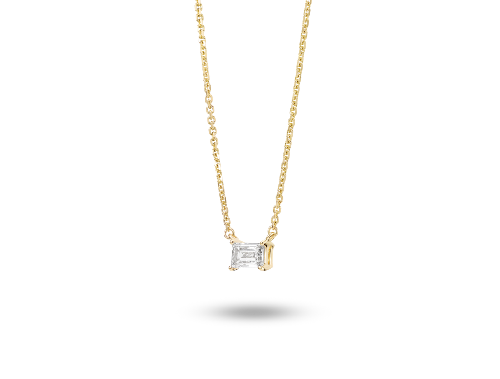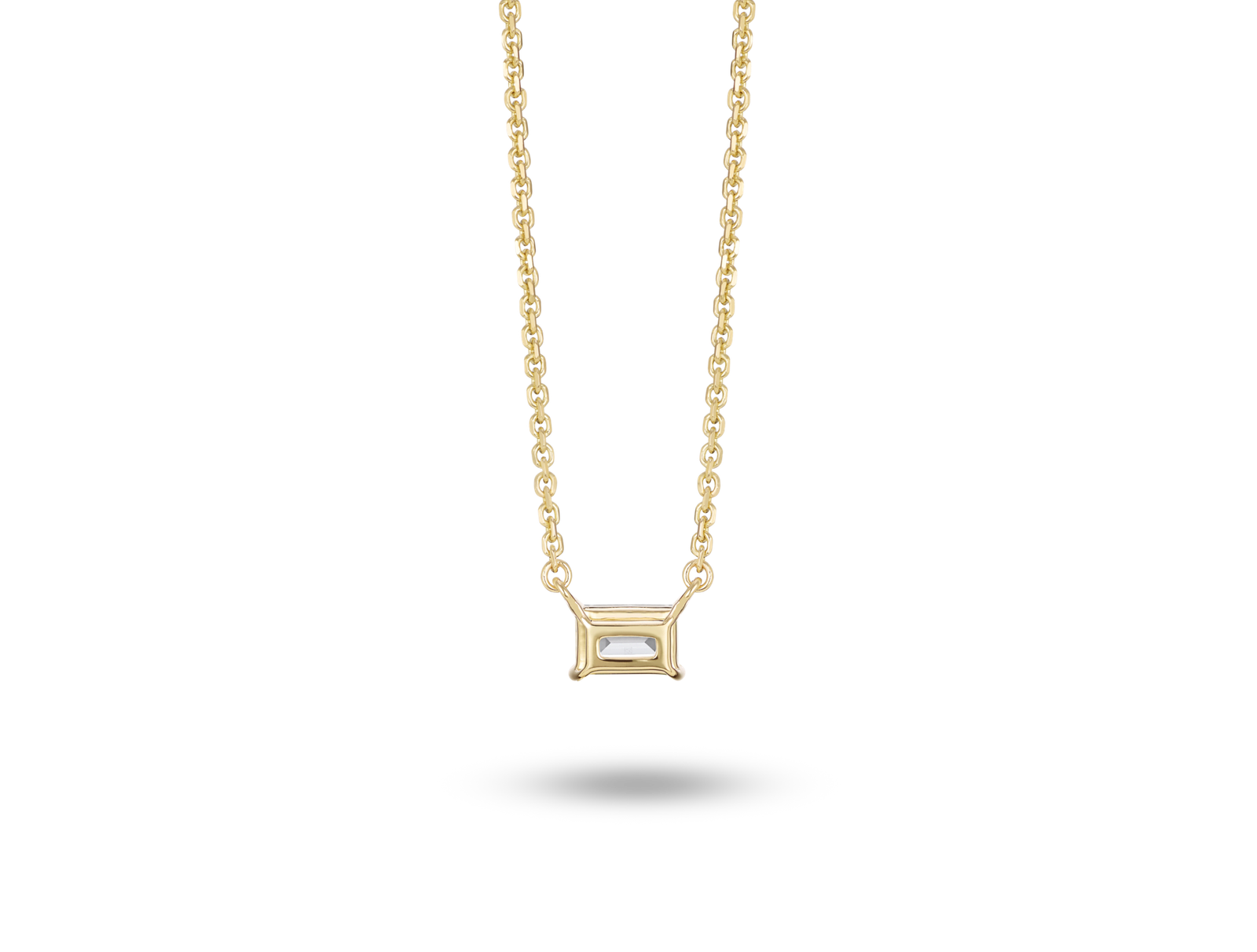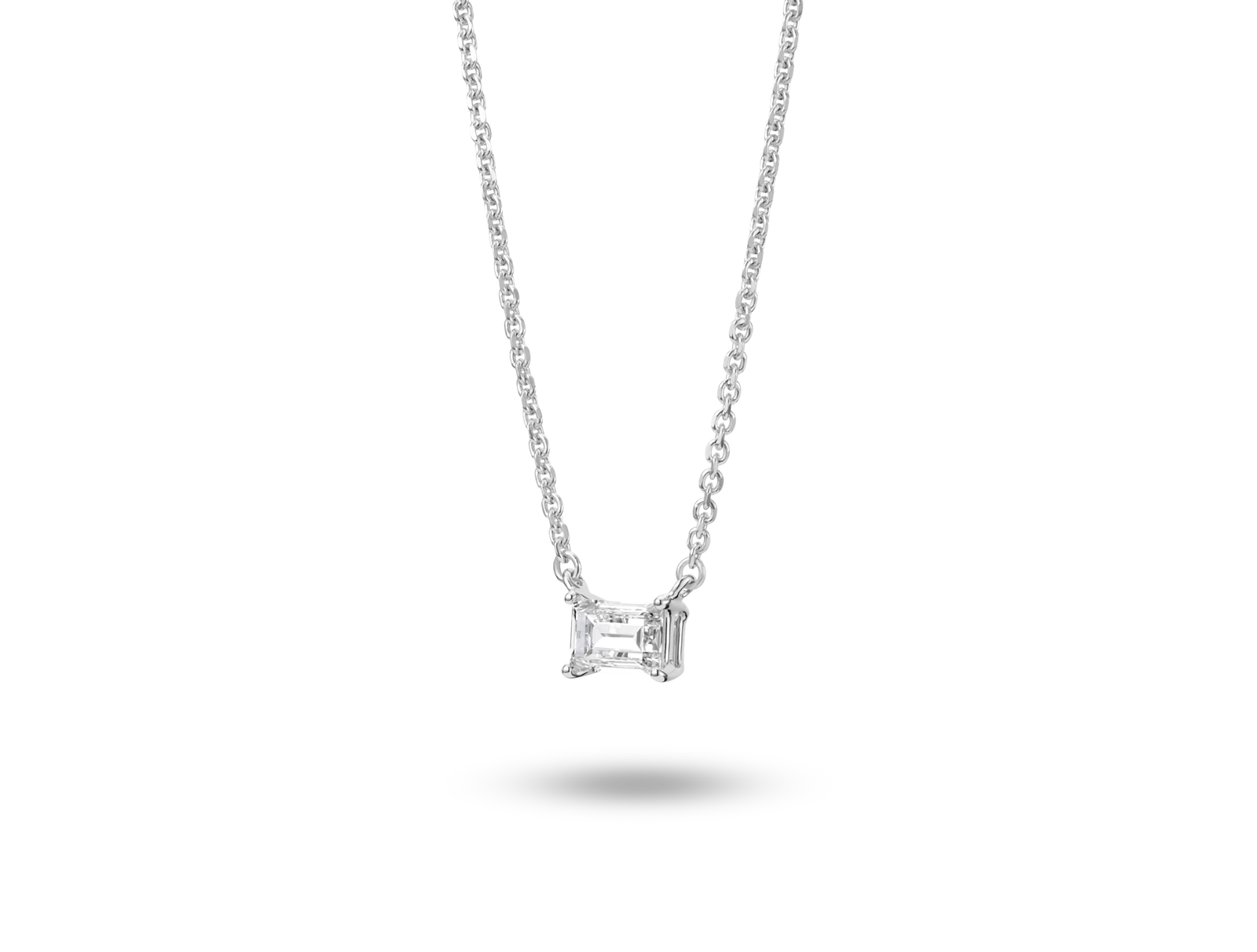 This baguette cut pendant offers a timeless, Art Deco inspired appeal that will become your new everyday accessory. Available in 14k white or yellow gold to suit your preference, it’s great for layering. The ¼ carat stone is graded at VS+ clarity, Near Colorless and grown from 100% renewable wind energy.