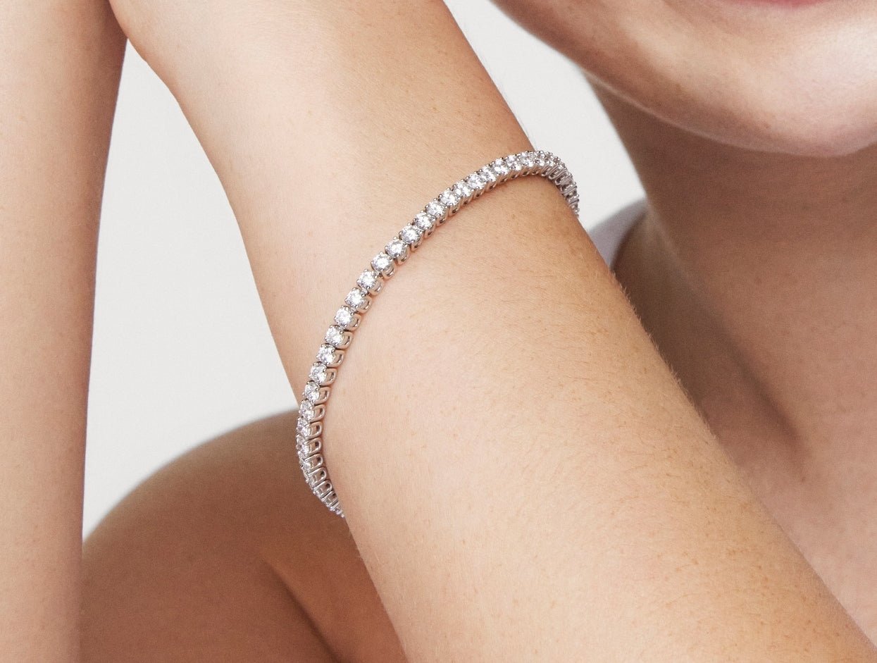 Beautifully handcrafted in 14k gold, our tennis bracelets feature a continuous row of round brilliant cut lab-grown diamonds, graded at VS+ clarity, Very Good cut and G/H color. Each bracelet features a secure box clasp which fits seamlessly with the design.